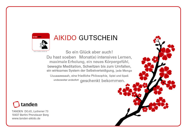 Gutschein für einen Monat Aikido-Training. Verschenke Aikido!